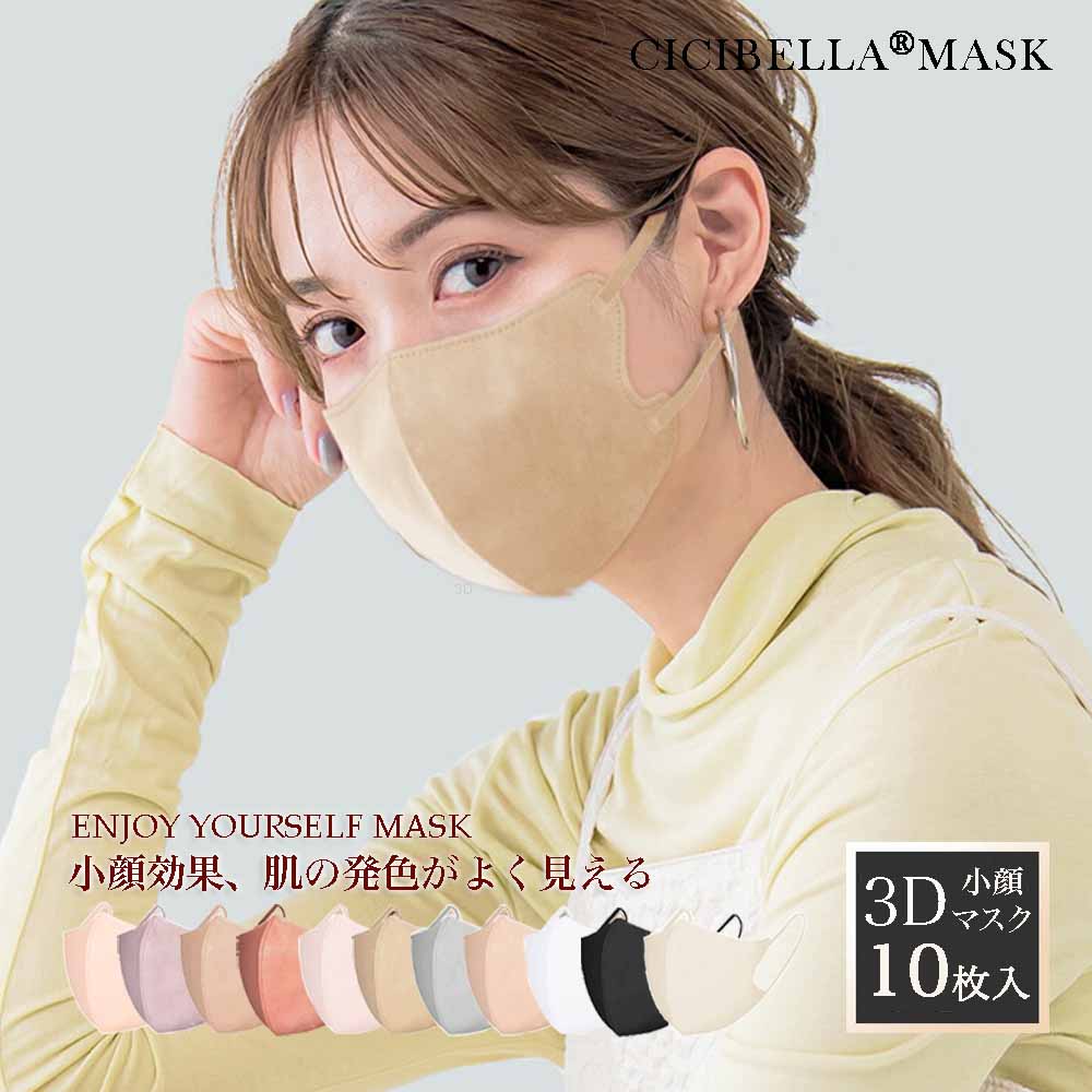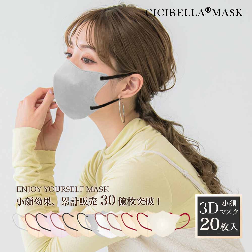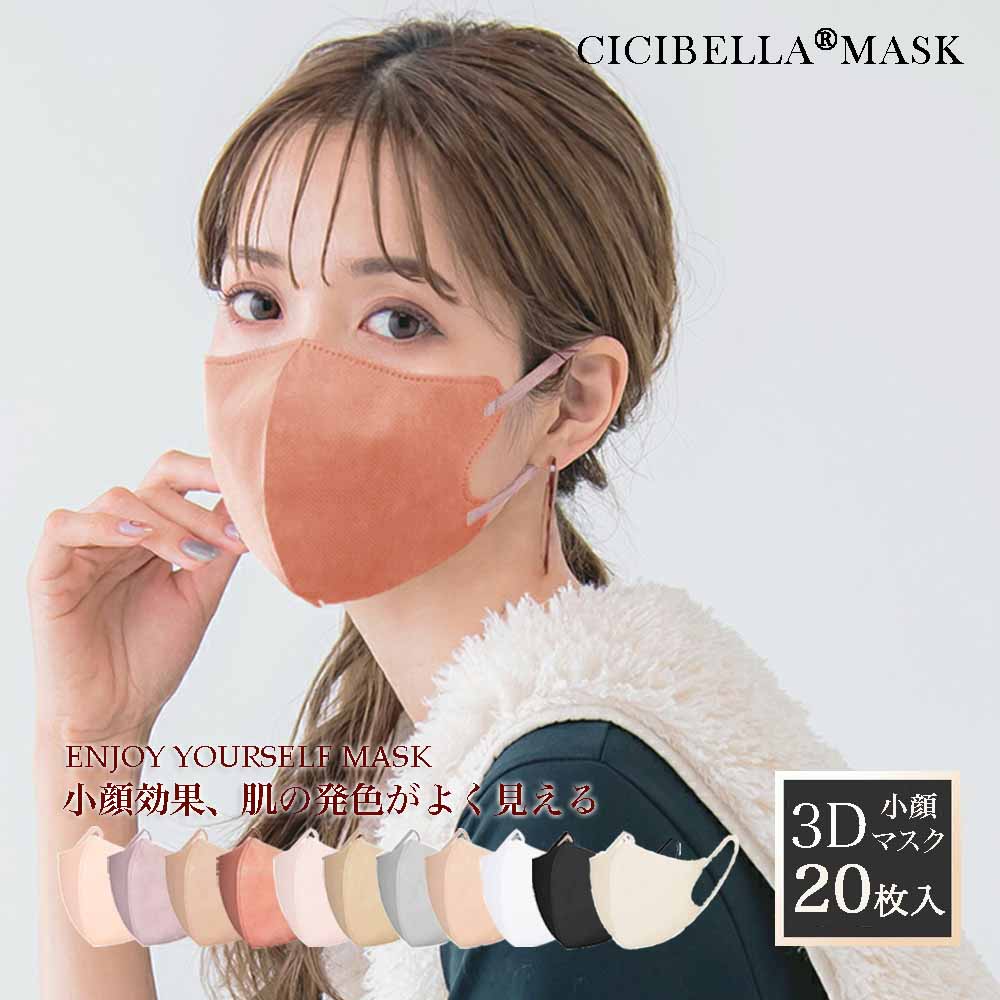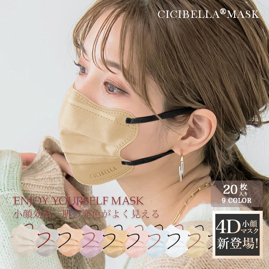 マスク 不織布 立体マスク cicibella 4D 小顔マスク バイカラー 血色マスク カラー くちばしマスク 小顔 肌に優しい 8カラー 20枚