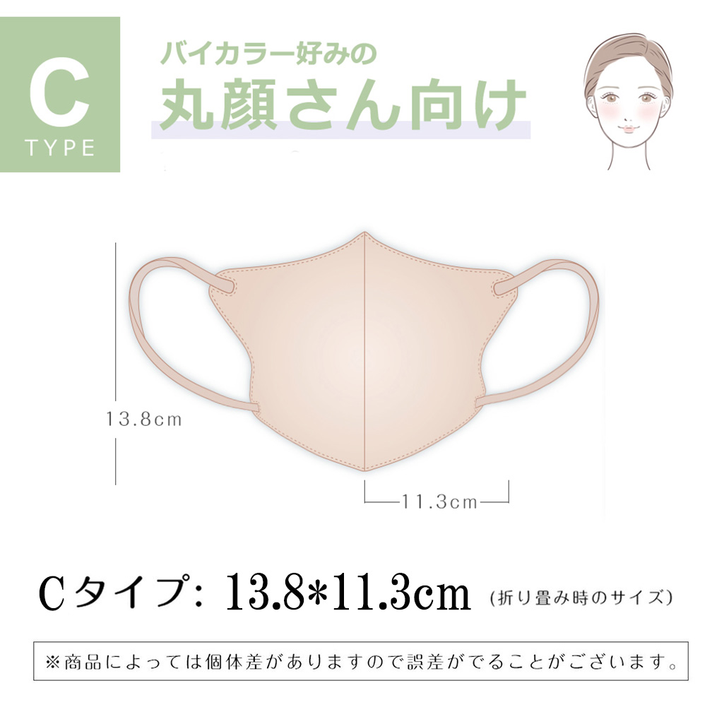 【敏感肌に優しい不織布】3D立体小顔マスク 11色 不織布 10枚 3層構造 耳が痛くない 快適 バイカラー マスク 花粉症対策 Cタイプ バイカラー好みの丸顔さん向け